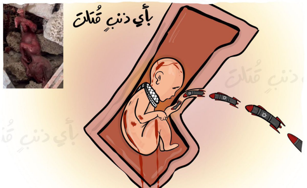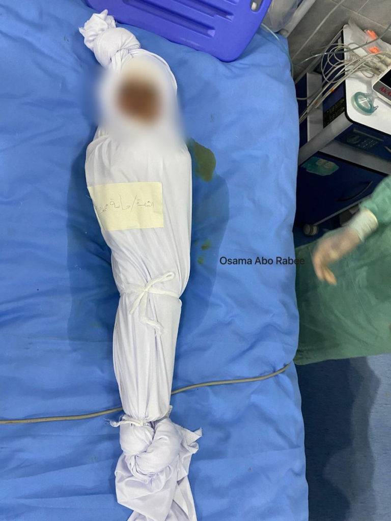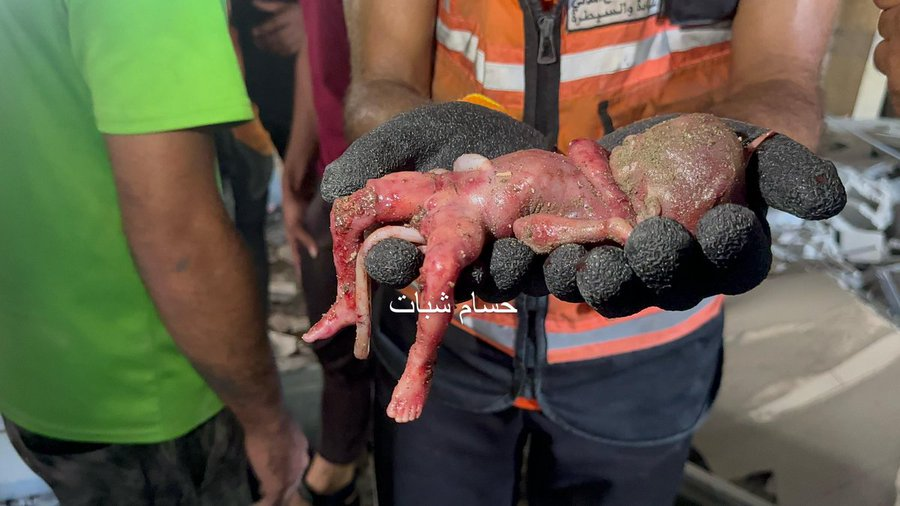 Some sources shared a graphic image of Bara’a’s fetus who according to different reports Bara’a was either three or seven months pregnant. Twitter/X user @SuppressedNws shared a video with a civil defense voluinteer holds the fetus in his hands.