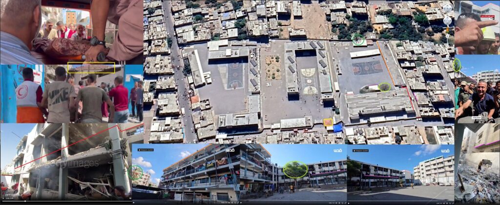 The casualties referenced in this incident are likely linked to strikes on two parts of the school complex, though it’s also possible that only one part of the school complex was hit and sources referred to the same site as Al-Falah school and Al-Zeitoun school.