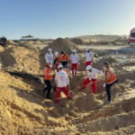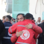 UN OCHA released a video featuring the excavation of the victims’ bodies. Jonathan Whittall, OCHA OPT Head of Office, stated: “Health workers should never be a target. And yet, we are here today, digging up a mass grave of first responders and paramedics. Seven days ago, Civil Defense and PRSC ambulances arrived at the scene. One by one, they were hit, they were struck. Their bodies were gathered and buried in this mass grave. We are digging them out in uniforms, with their gloves still on. They were here to save lives. Instead, they ended up in a mass grave. Their vehicles, ambulances, civil defense vehicles, and UN vehicles are crushed and dumped, covered in sand next to us. It’s absolute horror what happened here. This should never happen. Health workers should never be a target.”