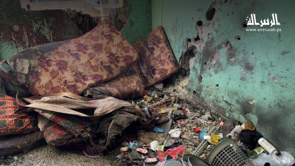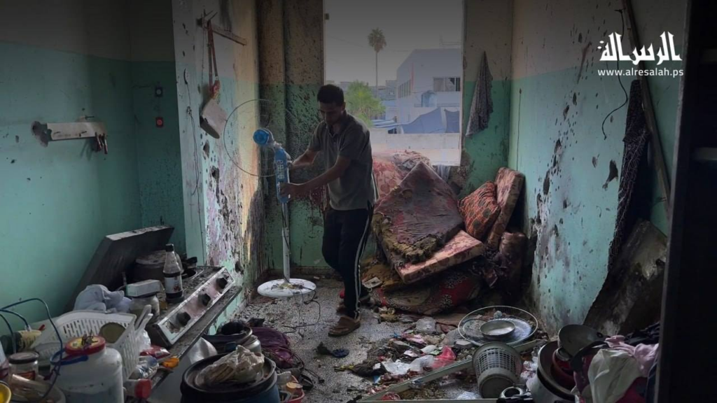 Al Resalah included in his Facebook post pictures of the destroyed classroom in which the family of Mujahed Abed Al Hadi Aqel had sought refuge, showcasing the destruction of the room in the aftermath of the airstrike. Additionally, Al Shabab Radio News shared a video touring the Khalid bin al-Walid School after the Israeli attack, in which the damage to the entire facilities can be observed. The video ends in the room shown in the pictures shared by Al Resalah, understood to have been the room in which the Aqel family was sheltered.