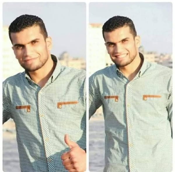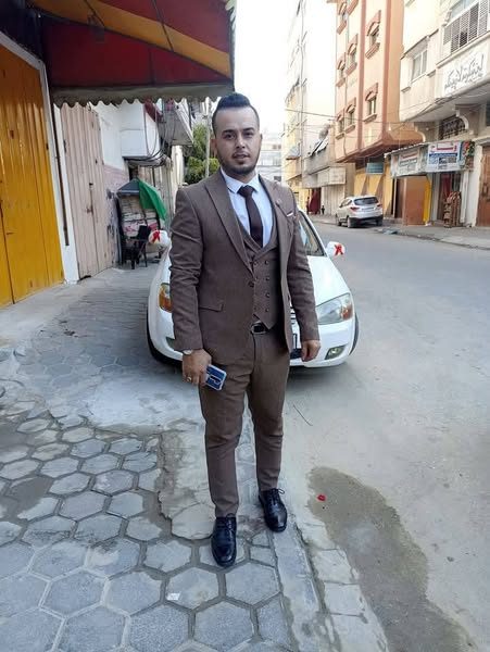 In one photo, 34-year-old Hassan Abdel Rahim Hassan Abu Karim (33 years old as per local sources) is shown in a gray suit jacket, white button-down, and a black tie and trousers. His short black hair is styled and he has a short beard and mustache. On Facebook, Marwan Abu Kareem, Ibrahim Abu Karim, Abdullah Abu Hussein, Umm Rital, and Adham Dweedar mourned the loss of Hassan. Adham wrote: “Oh God, every day we lose a loved one, a colleague, a neighbor, or a friend. The pain of separation tears our hearts apart. Our dear beloved Hassan Abu Karim ascends the path of pride and dignity.” Ibrahim Abu Karim lamented the death of his “ dear, compassionate brother.”