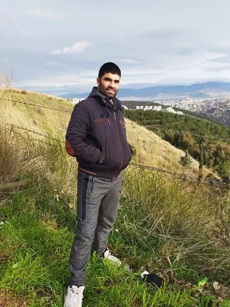 In another photo, 32-year-old Muhammad Hussein Al-Sayed Abu Darwish (28 years old as per local sources) is shown standing atop a hill, wearing a black jacket and gray pants with white sneakers. He has his hands in his pockets, and he is smiling, posing in front of a town far in the distance.