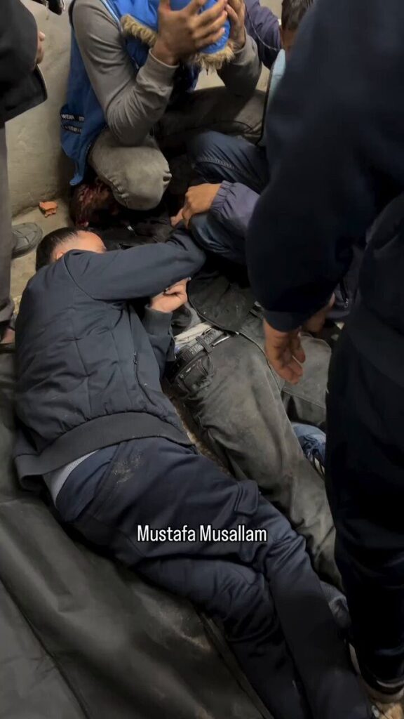 @qudsn posted an emotional photo captioned “the last hug”, showing a young man embracing his brother, who was killed in the strike. The pair is lying on the ground as the cries of the mourning brother fill the crowded room. @TRTArabi posted a video showing the same emotional scene.