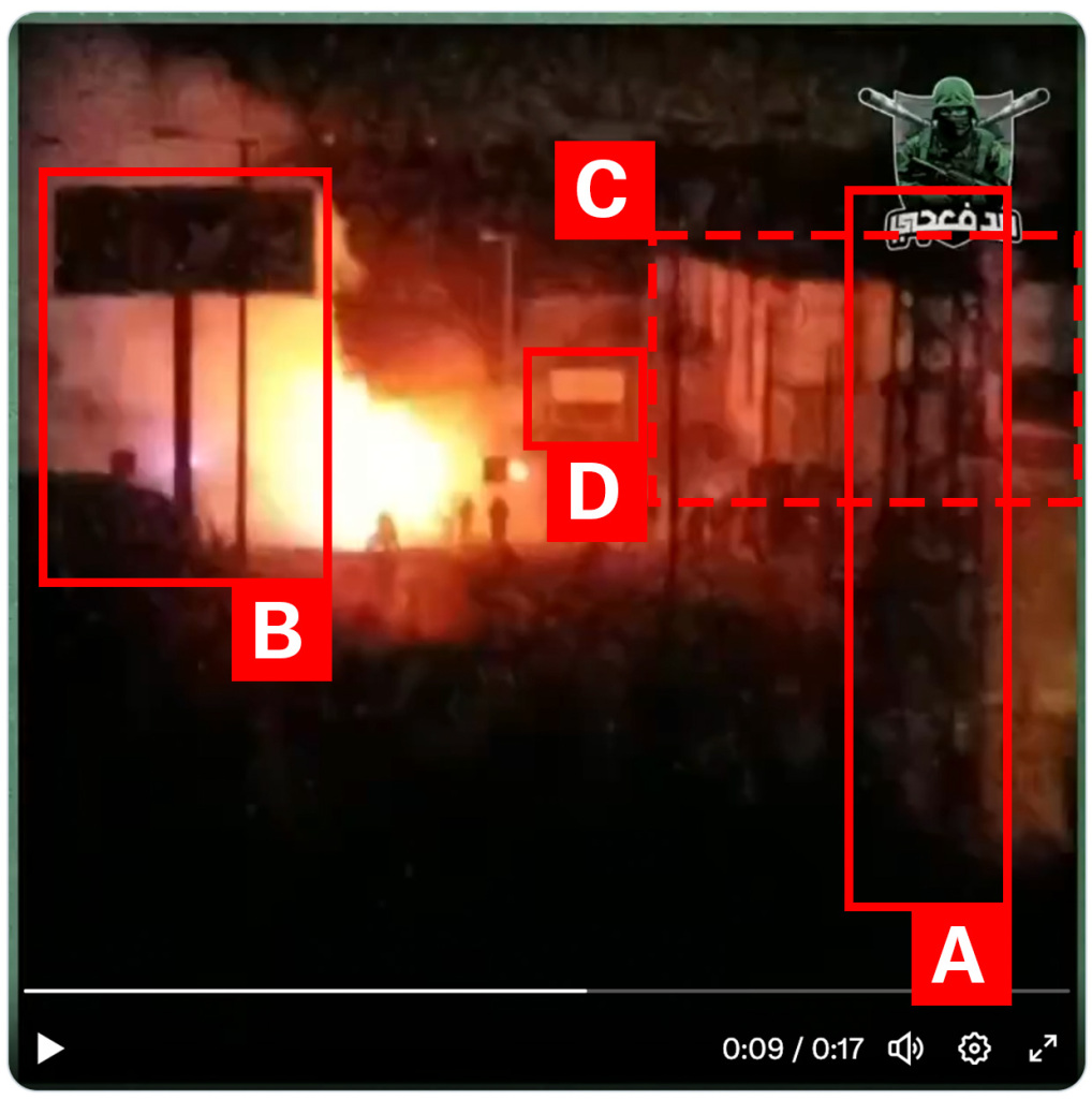 Reports of the incident mention the vicinity of Al-Awda factory (مصنع العودة للبسكويت) to the east of Deir al-Balah (دير البلح). Analysing audio-visual material from sources, we have narrowed the location down to the following exact coordinates: lat, lon.