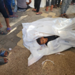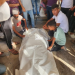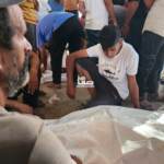 The video by Al Jazeera, filmed by its reporter Rami Abu Taima from the place of the incident, showed a big crowd of people who came there, blood spilled on rubble, chunks of concrete and walls, and the shoes of the victims. It was said that the victims were hungry and were preparing to have lunch. The reporter interviewed a witness who said, “Young people were working to secure the aid. These were hungry people who died, people waiting to eat.” The video further showed emotional scenes of Palestinians bidding farewell to their killed relatives and friends, crying over their dead bodies, among them the body of a child Muhammad Abu Khater.