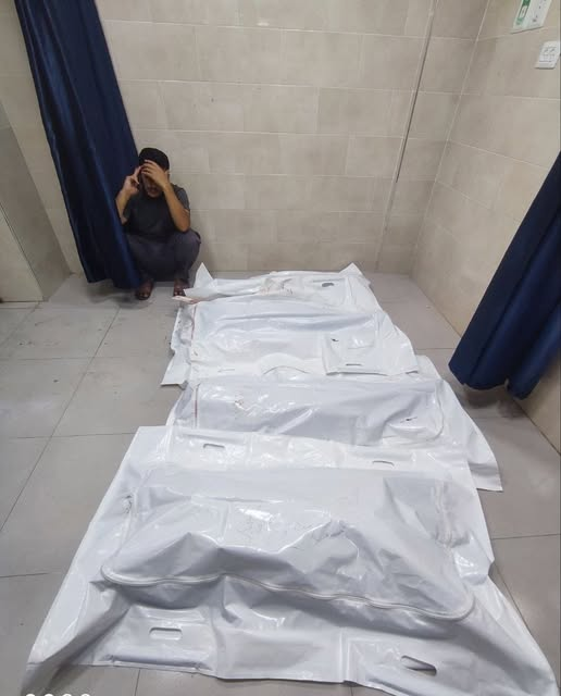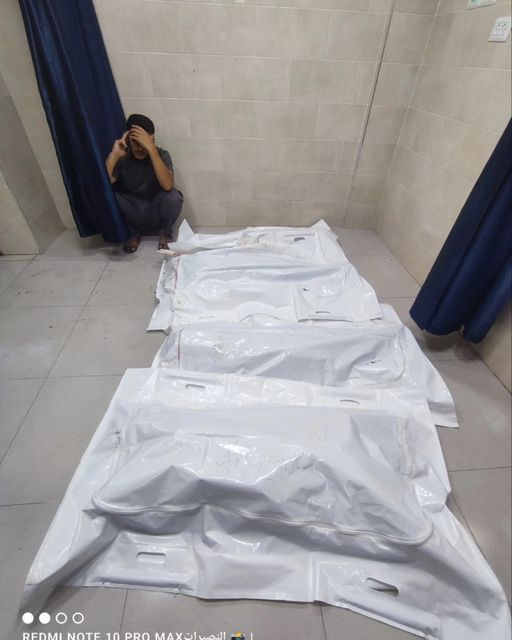 Mahmoud R. [al-Baz] announced to “All the honorable Al-Bazat in the homeland and abroad” that Samah and her children were killed and would “join their grandfather and uncles and cousins and aunts and cousins and their family members and the rest of the martyr” – showing the impact the war has had on families. An image accompanying the post includes at least three bodies covered in white plastic.