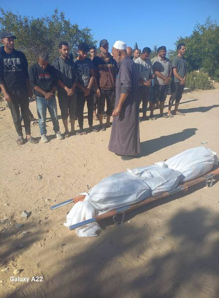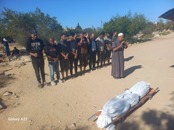 Ibrahim Basal Abu Nasser posted a condolence message for the loss of Maria Mohammed Abed al Moati Basal to their uncle Abu Raafat, grandfather of Maria, along with an image of a group of men mourning a body wrapped in a white shroud. According to Medhat Basal, Maria was “an innocent flower who graduated from high school and went to university” so that she could see the world. Her father “works as a worker in a small factory that produces electric heaters. She has no connection to any political, social or resistance activity.” Maria’s siblings, Baha and Ahmed, were reportedly killed months earlier when trying to collect firewood from their home which they had been forces to flee.