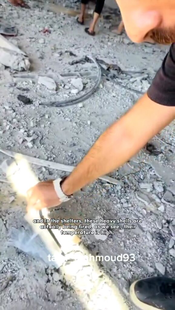 Twitter/X user @easybakeovensz posted an image of a nose cone of Small Diameter Bomb (SDB) / GBU-39 found (1:04) after the strike. Osama Morsi Boqolem reported that incendiary weapons were used.