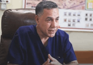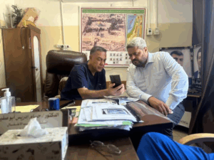 Facebook user Ebrahim Msalam posted saying Dr. Hussam was injured “in the hospital that loves him and which he loves”, and that “North Gaza is being annihilated.” An image shared by Ebrahim showed him with Dr. Hussam at the doctor’s office. That and other images of the doctor before his injury, shared by various sources, show him as a middle aged man with greying hair and a dignified yet kind countenance, dressed in his navy blue hospital scrubs. Hoda Alian called the doctor “heroic”, and requested prayers towards his recovery.