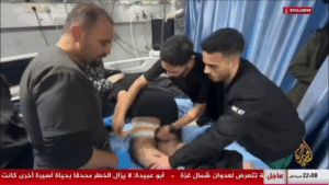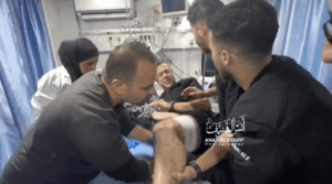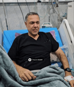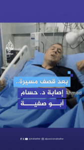 The Palestinian Information Center posted a video of Dr. Hussam originally published by Al Jazeera Arabic that showed him being treated at the hospital – he is seen visibly crying out in pain, his leg wrapped in bandages. The Center corroborated the cause of the injury as being from an Israeli strike – with the reporter in the video noting that the doctor had been injured in his thigh, and that the strike had been the third consecutive day of bombing at the Kamal Adwan Hospital.