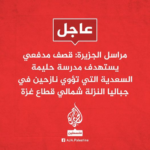 Shortly before 10:51 AM on Friday, October 25, 2024, Israeli forces allegedly bombed the vicinity of the Halima Al-Sadia School, which shelters displaced people in Jabalia Al-Nazla, North Gaza. Reports noted that a number of people were injured in the incident. Although the exact details of the casualties remain unclear, the videos showed at least five injured civilians, including a child.