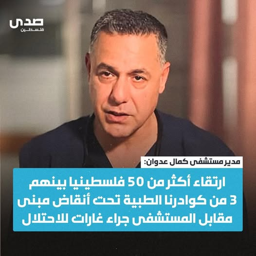 Quds News Network reported that Israeli forces reportedly bombed the Al-Safir residential tower near the Kamal Adwan Hospital, with Hani al-Shaer noting that at the time of the strikes, the tower housed several displaced families, including the Al-Daqs family. Hamdios Vabadus and Nisreen Razayna termed the strikes a “massacre”, with Mc-doualiya posting that more than 50 had been killed, including medical staff who were “with their families in the house” when the tower was hit, and “their bodies are still under the rubble.” Palhadath2019 reported that civilians were also injured in the strike.