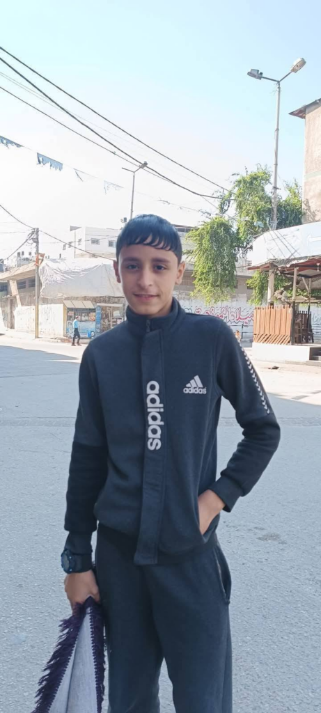 Belal Dahlan also mourned the death of Alaa Muhammad Abu Ighbeez (Abu Ali) and his eldest son Ali, calling them “patient and steadfast” and expressing the hope of meeting them in heaven. He added the images of Alaa, who was a young man with a short haircut and a dark, long beard wearing a black jacket and scarf in the attached image, while his son Ali was a teenager, wearing a white T-shirt and standing at the seaside in the attached image.