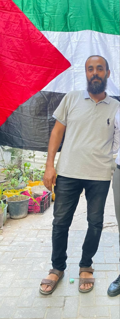 In his image on the website Genocide in Gaza, Abdul-Rahim is seen as a middle-aged man with a long, thick beard, dressed in a grey polo T-shirt, posing in front of the Palestinian flag. This image of him was also shared by many social media users, mourning his death. His son Omar is seen wearing a white polo T-shirt.