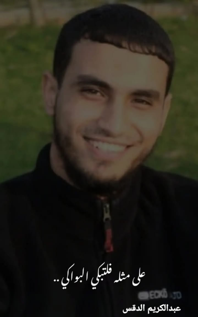 The death of Muhammad Abu Ighbeez was mourned in a post by Belal Dahlan, who wrote, “With the highest verses of pride and honor, we bid farewell to a new moon of our moons and join a constellation of moons of this nation. We announce to you the news of the martyrdom of the beloved, patient and steadfast in the northern Gaza Strip, my beloved cousin (Muhammad Abu Ighbeez Abu Anas).” He added an image of a young man with short dark hair, big brown eyes, and a dark trimmed beard.
