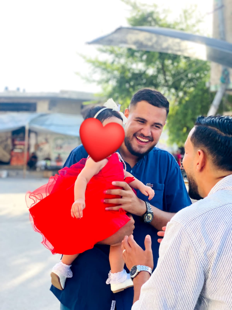 Husain Abd noted that the Al-Daqs family had been displaced from their homes and were living in the Al-Safir Tower opposite the hospital.