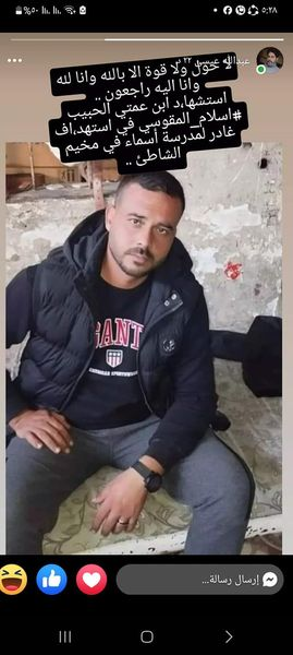 Another victim added to the list was 33-year-old Islam Ahmed al-Maqousi, whose death was confirmed by his cousin Arch Fadi Fayez Essa in a Facebook post. Rewaa Al Maqousi, Islam’s brother, shared a photograph of him sporting a black vest and collegiate sweatshirt. His loss was palpable: “I will miss you, my dear.”