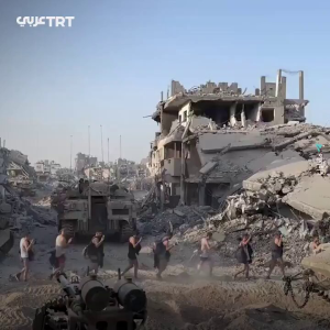 X/Twitter user Abu_Saleh9 posted a video showing the destroyed hospital surrounded by tanks as a line of people, many with their hands held above their heads and some with visible injuries and limps, are being marched around. A Facebook post by Youssef Rabhi mentioned that medical personnel and patients were forced to leave after being stripped of their clothes, and were then interrogated and “set on fire in several sections of the hospital”.