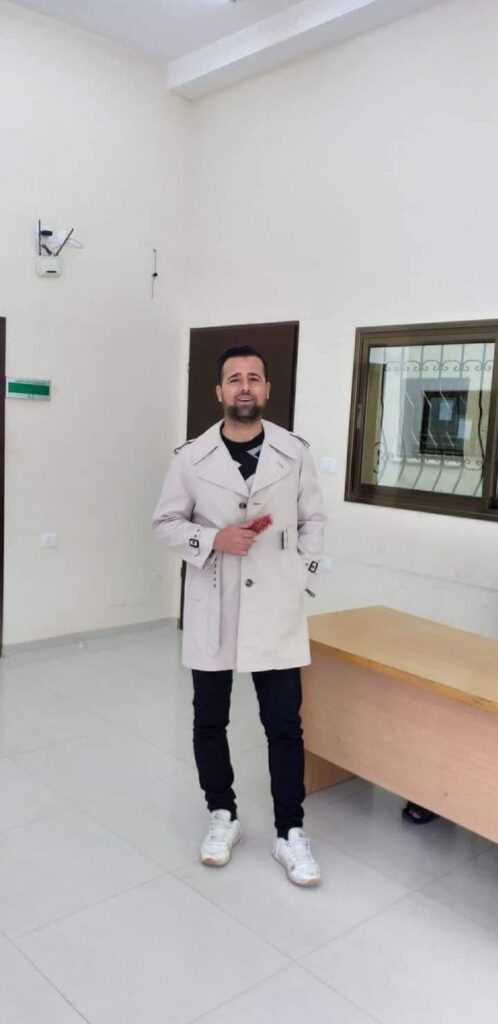 Abu Mahmoud al-Bashiti mourned the loss of his nephew, Ayman al-Bashiti, and his grand-nephew, Sajid al-Bashiti, writing “We consider you among the martyrs and the righteous with God, and good are those companions. To God belongs the matter before and after, may God have mercy on them and grant them a home better than his home. We ask God for complete safety for all members of his family.” He included a photo of Sajid’s body wrapped in a white shroud, and a photo of Ayman, smiling in a white trench coat. He was a middle-aged man with black hair and dark eyes and a thick beard.