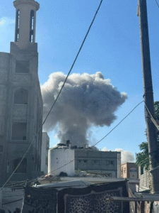 An image shared to Facebook by user Hamla Kaddour showed a plume of smoke rising from behind a building. As it does not appear that this image was connected to the incident reported on, it has been removed from the assessment.