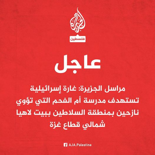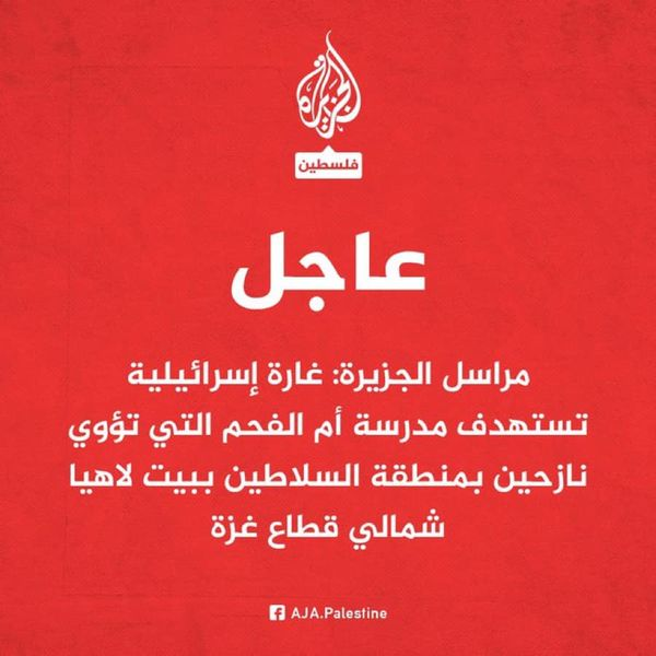 Israel Defense Forces: "IDF: A short while ago, with the direction of IDF intelligence, the IAF conducted a precise strike on terrorists who were operating inside a Hamas command and control center embedded inside a compound that previously served as the 'Umm al-Fahm' School in the northern Gaza Strip. The command and control center was used by the Hamas terrorists to plan and execute terrorist attacks against IDF troops and the State of Israel. Prior to the strike, numerous steps were taken to mitigate the risk of harming civilians, including the use of precise munitions, aerial surveillance, and additional intelligence information. This is a further example of the Hamas terrorist organization's systematic abuse of civilian infrastructure in violation of international law. The IDF will continue to operate against Hamas in defense of the citizens of Israel."