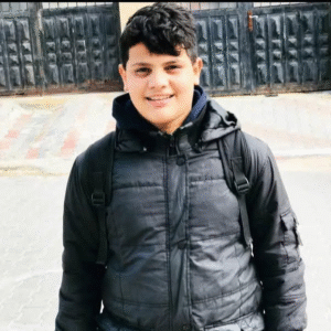 Posting to Facebook the next day, Raja Abu Saloum also expressed condolences for the Jouda family. Raja shared a different image of Rateb, taken before he was killed. In the image, Rateb, clearly a child at the time of the capture, wears backpack and a navy hoodie under a black jacket. He smiles toward the camera. Facebook user Adly Abu Taha, and others, also circulated the photo.