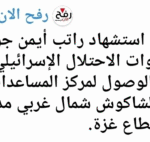 Moments later, Osama Al-Kahlout announced that Rateb had “ascended” after being shot by “army bullets while trying to reach the aid center in the Al-Shakoush area.” Osama added that “The army opened fire on Palestinians in the Netzarim axis while they were heading to receive aid.”