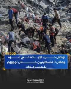 At 3:16 PM local time, Arab Organization for Human Rights in Britain posted on Facebook, announcing that three people were killed by Israeli military fire while trying to reach the American aid distribution point near Al-Alam roundabout. The organization added that 14 people, including those three near the Al-Alam roundabout, had been killed since dawn.