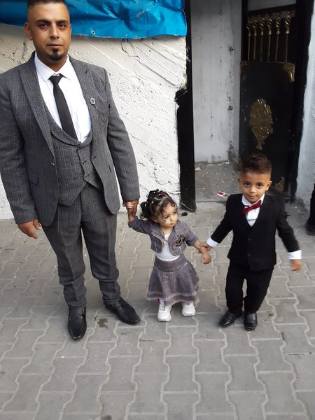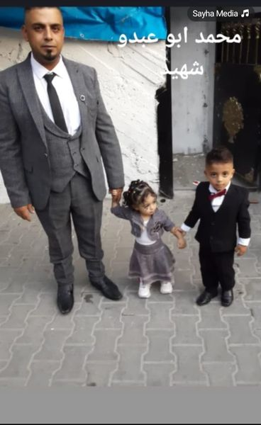 Rafat Abdo shared an image of Muhammad, a man in his 30s dressed in a three-piece grey suit and holding the hand of his small daughter who was holding the hand of her young brother.