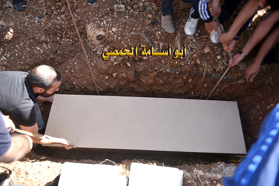 Another picture shows a group of mourners, mostly men, standing in rows, facing the casket as they participate in a funeral prayer. The casket, still adorned with flowers, lay at the forefront of the image. Another image captured the casket being carefully lowered into a grave. Two men crouched beside the grave, using straps to guide the casket into place. The grave itself was freshly dug, its edges sharply defined against the dry, rocky soil. The surrounding mourners stood close by, watching the process with solemnity and reverence. The final image showed men using shovels to cover the grave with soil. A cloud of dust rose as the dry earth fell into the grave, signaling the final act of the burial. The mourners, now fewer in number, watched from a short distance. The surrounding environment was barren, with sparse vegetation and dry earth dominating the landscape, emphasizing the solemnity of the act.