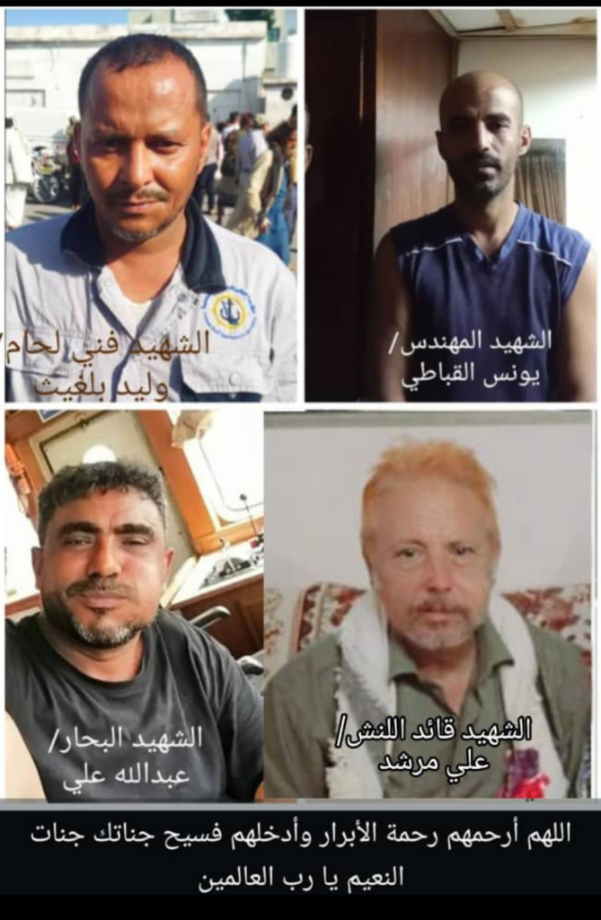 Facebook user Faqirah Mohammed shared a post naming Younis Abdo Abdullah Ali Murshid al-Qabati, Ali Murshid al-Ahmadi, Abdullah Ali Abdullah Maqbouli, and Walid Ahmed Qasim Balgheeth as having been killed in the strikes, adding that Captain Mohammed Abdullah al-Khouli had been injured. Abdulrahman Maqbool called the victims the “Hudaydah port firefighters.”