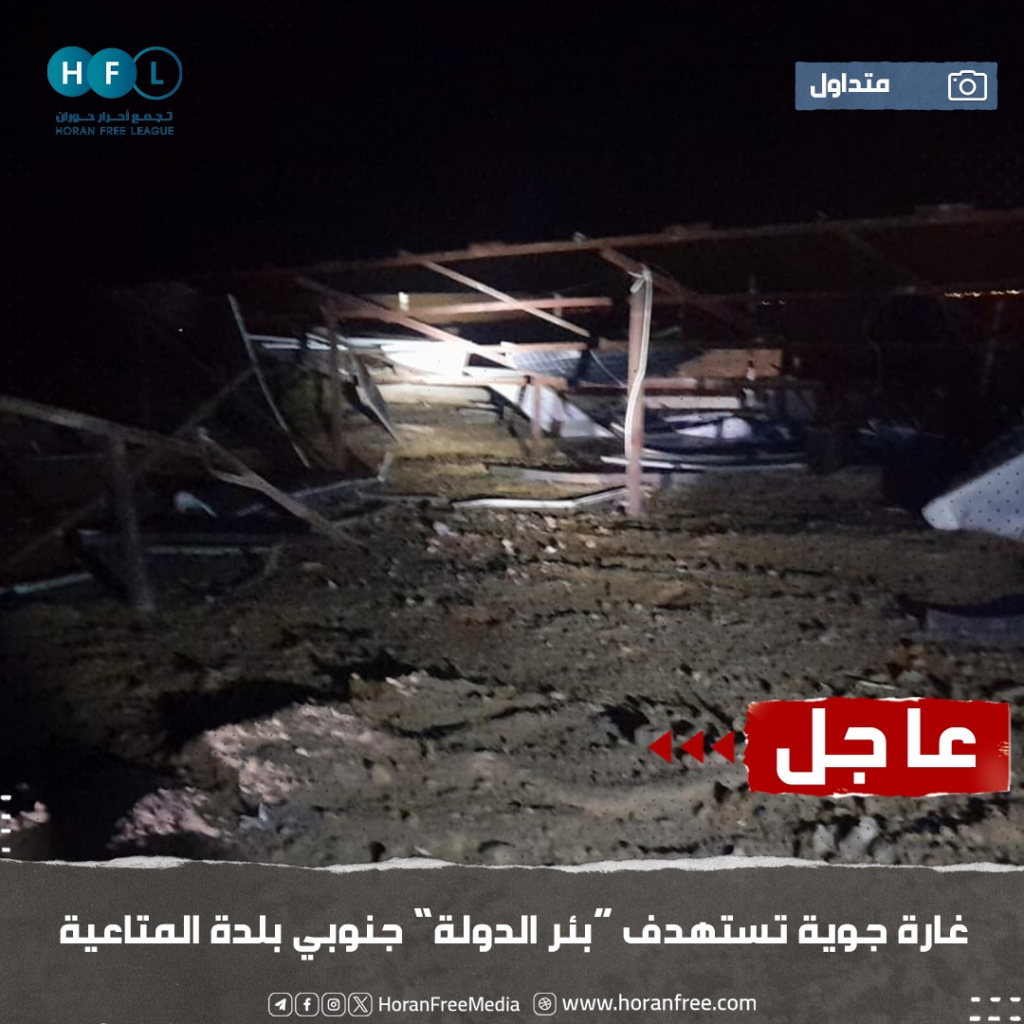 During the evening of Monday, December 12, 2023, around 9:18 p.m., a civilian was slightly injured by an airstrike reportedly perpetrated by Jordanian warplanes in Bir Al-Dawla, located in the south of the town Al Mata’iya in the eastern countryside of the Daraa Governorate.
