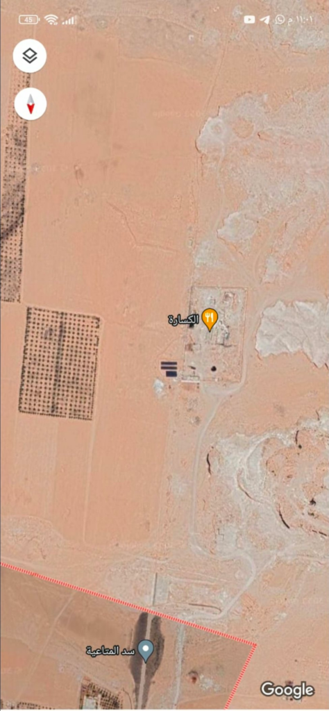 According to the sources, the site was Al Mata’iya dam located between the Syrian border 63 and 64, a public facility with solar panels and water cells that had been destroyed as a result of the incident  The Twitter/X user @salahmalkawi11 posted a screenshot of the exact incident location. The airstrike injured the caretaker of the facilities, who was subsequently taken to the hospital.