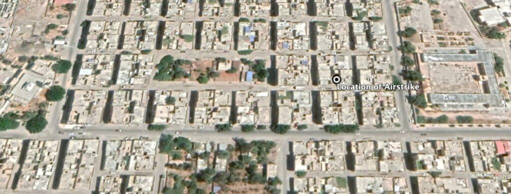 Satellite image showing the exact location of the airstrike.
