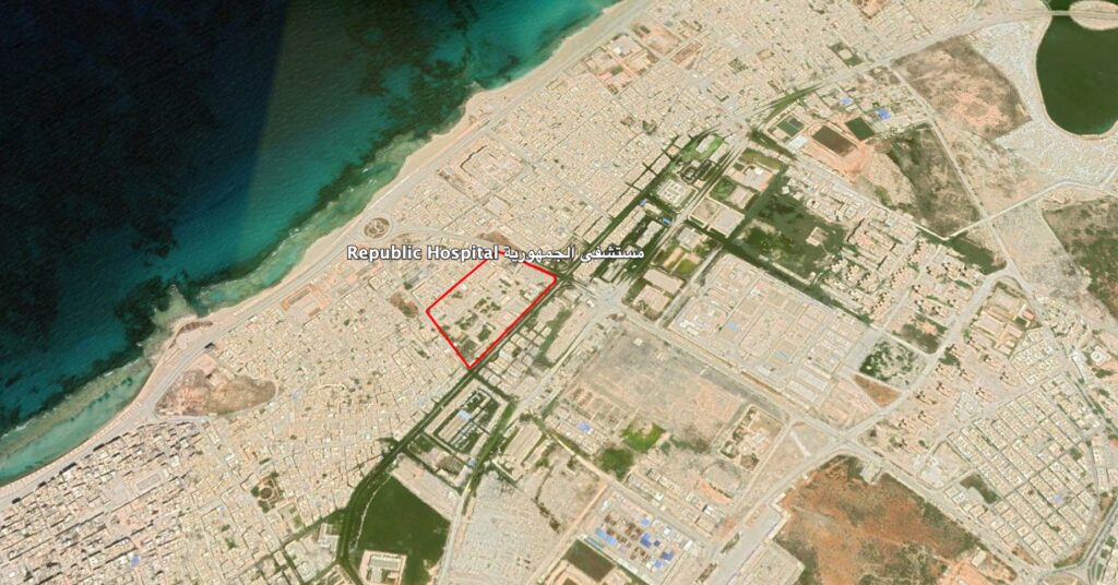 Image showing the location of the Republic Hospital in Benghazi, near where the airstrike targeted.