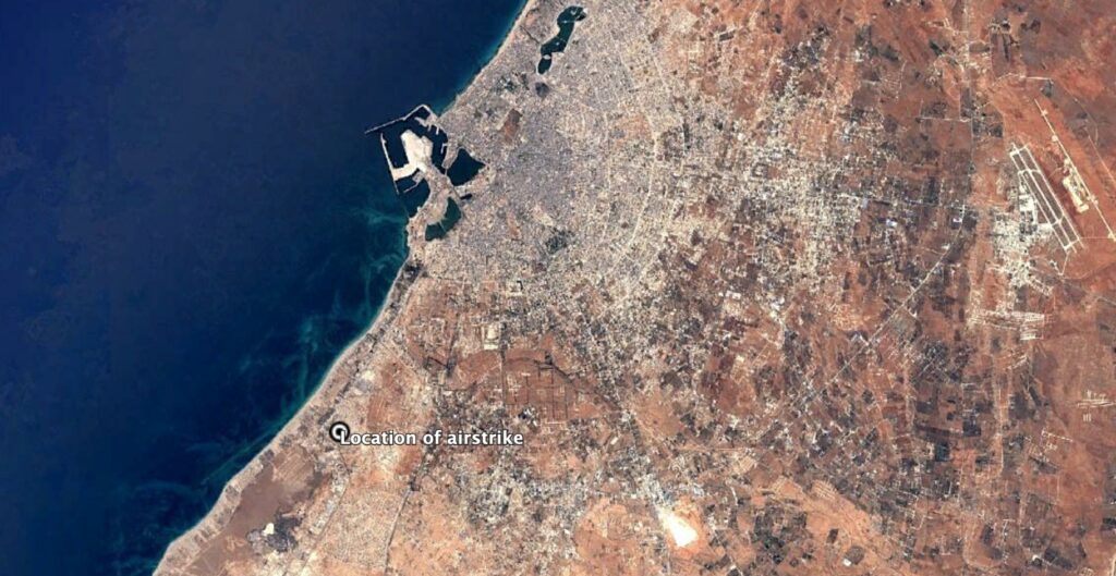 Satellite image showing location of home targeted by airstrike within Benghazi.