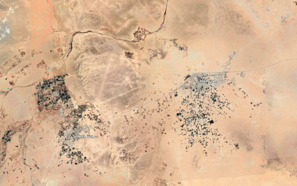 Reports of the incident mention a farm being struck between the towns of Sokna (سوكنة) and Hun (هون). Due to limited satellite imagery and information available to Airwars, we were unable to verify the location further. The generic coordinates for a middle point between these two locations are: 29.07728, 15.864128.