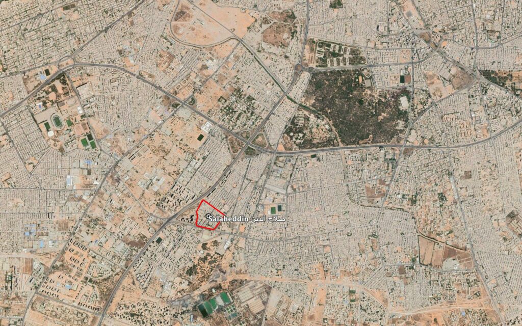 Reports of the incident mention the neighbourhood of Salaheddin (صلاح الدين), for which the generic coordinates are: 32.846389, 13.161667. Due to limited satellite imagery and information available to Airwars, we were unable to verify the location further.