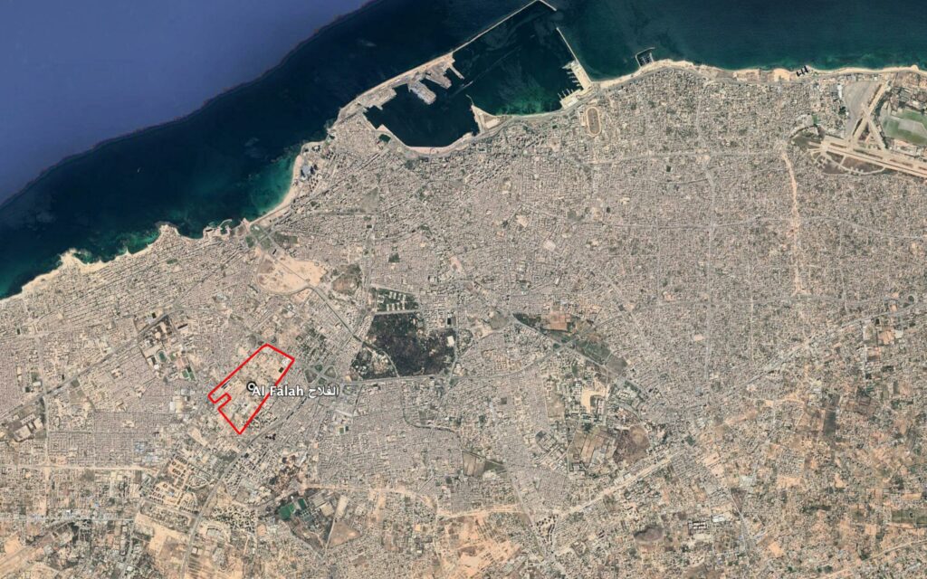 Reports of the incident mention the neighbourhood of Al Falah (الفلاح), for which the generic coordinates are: 32.855076, 13.154240. Due to limited satellite imagery and information available to Airwars, we were unable to verify the location further.