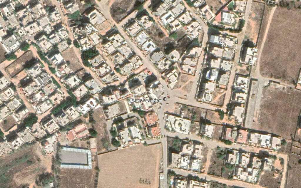 Reports of the incident mention the vicinity of Al Nokhba Clinic (مصحة النخبة) in Tripoli (طرابلس). Analyzing audio-visual material from sources, we have narrowed the location down to these exact coordinates: 32.8227497, 13.2225166.
