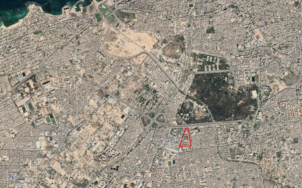 Reports of the incident mention the neighbourhood of Al Zuhour (الزهور), for which the generic coordinates are: 32.853889, 13.176667. Due to limited satellite imagery and information available to Airwars, we were unable to verify the location further.
