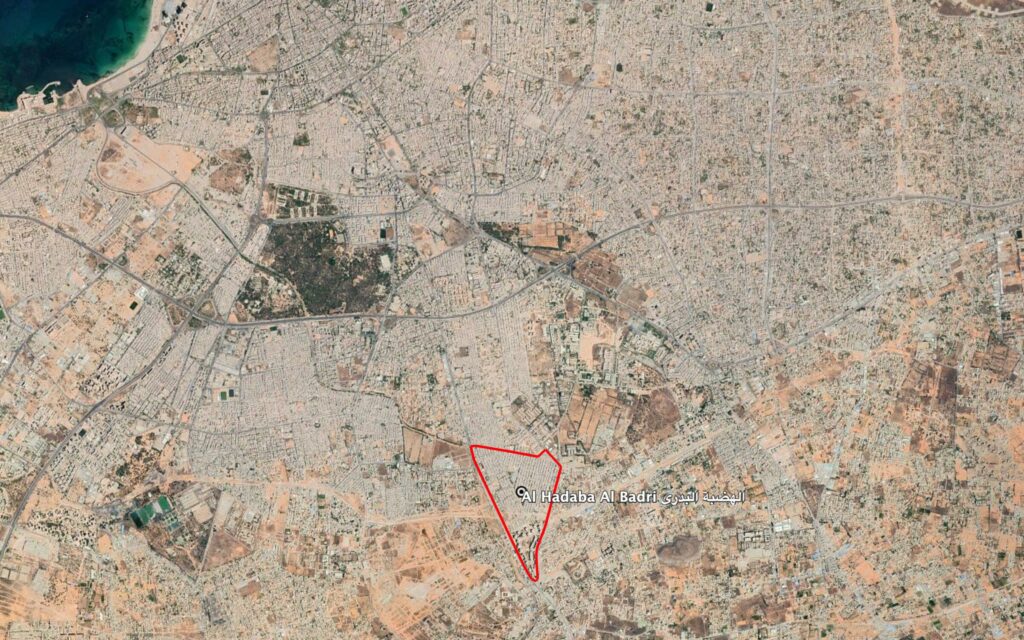 Reports of the incident mention the neighbourhood of Al Hadaba Al Badri (الهضبة البدري), for which the generic coordinates are: 32.836207, 13.21315. Due to limited satellite imagery and information available to Airwars, we were unable to verify the location further.