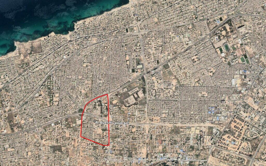 Reports of the incident mention the neighbourhood of Al Bueshi (البوعيشي), for which the generic coordinates are: 32.841231, 13.097334. Due to limited satellite imagery and information available to Airwars, we were unable to verify the location further.