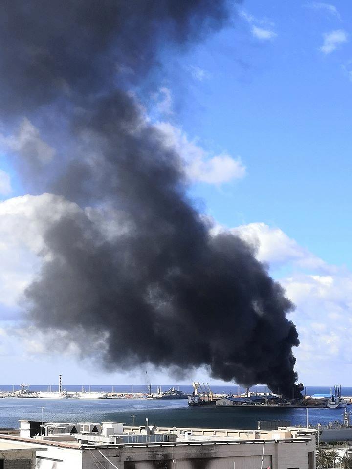Witnesses confirmed that shells fell on the main port of Tripoli earlier today, and one of the owners of shops near the port indicated in a statement to the Al Wasat that smoke was rising from several sites that were bombed, benefiting that there were ‘news of the burning of a boat that was anchored in the port.'”