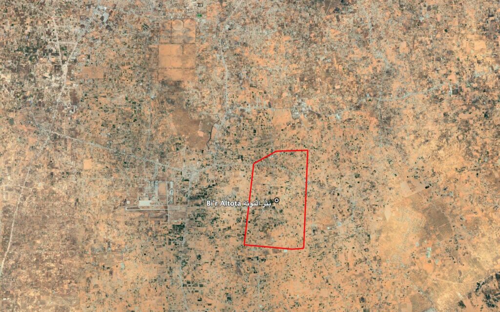 Reports of the incident mention the neighbourhood of Bi’r Altota (بئر التوتة), for which the generic coordinates are: 32.674722, 13.241944. Due to limited satellite imagery and information available to Airwars, we were unable to verify the location further.
