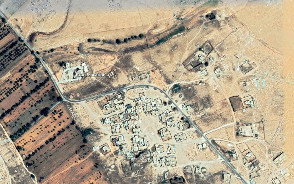Reports of the incident mention a mosque being struck in the Wadi Jarif (وادي جارف) area, for which the exact coordinates are: 31.081103, 16.308853.