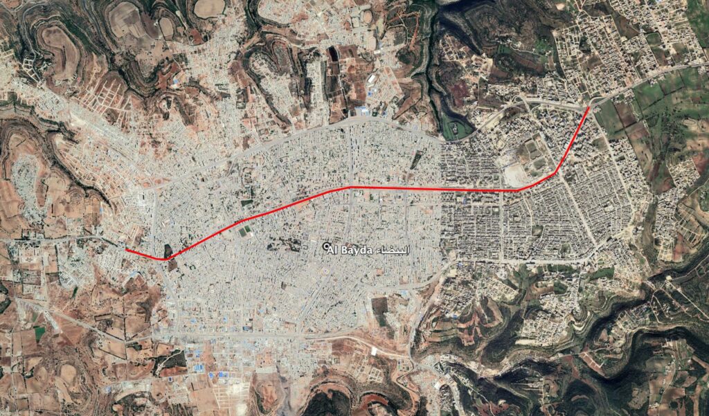 Reports of the incident mention the Al Ouruba or Al Abraq street (شارع العروبة) in the city of Al Bayda (البيضاء).