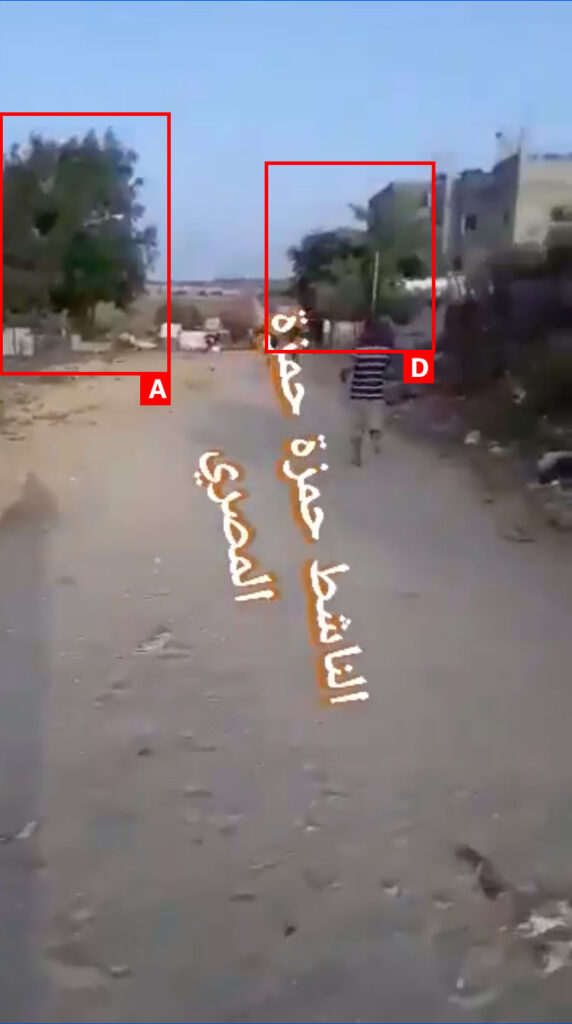 Reports of the incident mention a strike on Al Masryeen Street (شارع المصريين) in Beit Hanoun (بيت حانون). Analyzing visual material from sources, we have narrowed down the location to these exact coordinates: 31.534080, 34.549485.