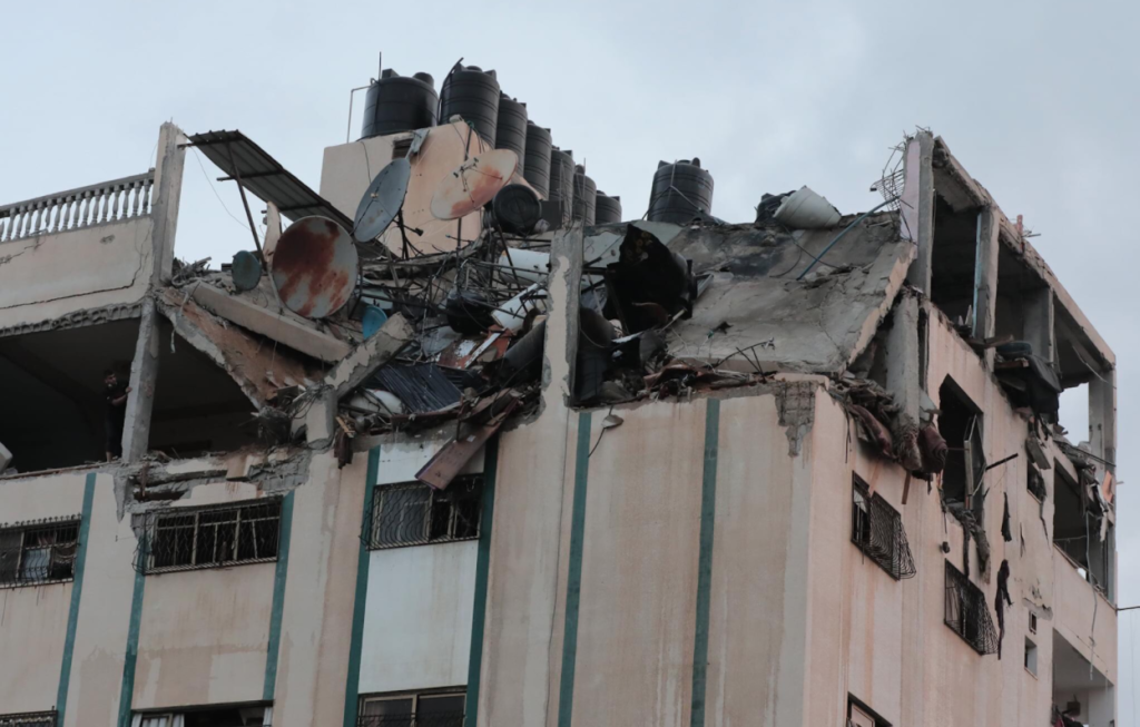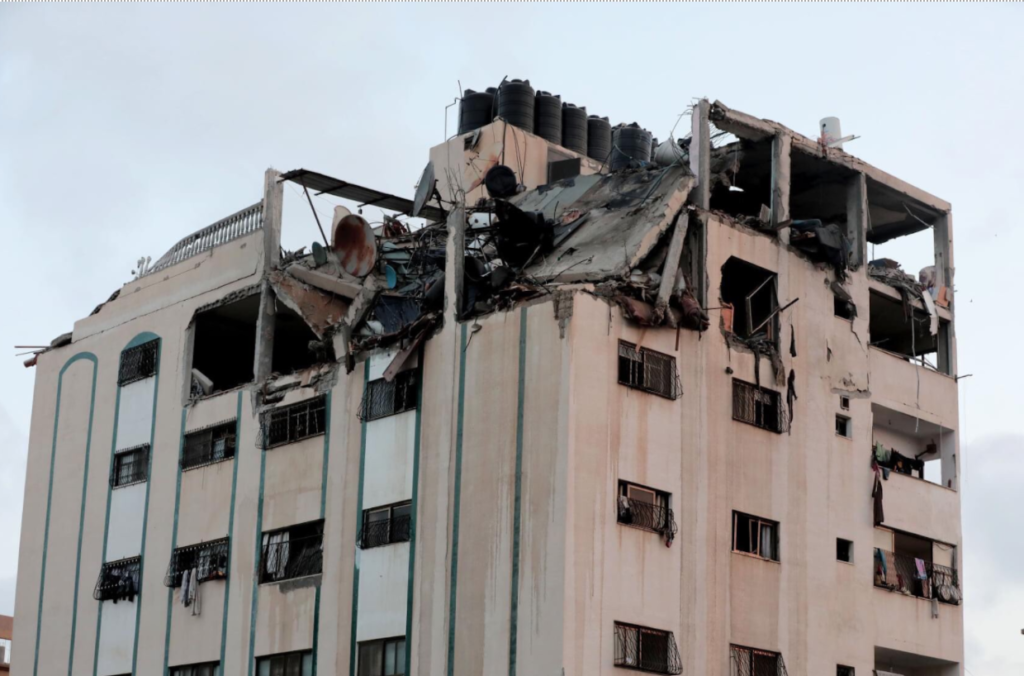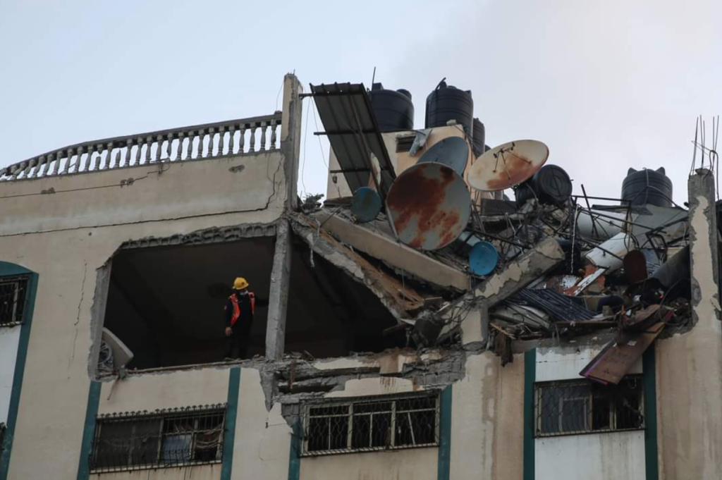 The building targeted consisted of 13 apartments over seven floors. Al Mezan Centre for Human Rights reported that the top floor was hit with three missiles, while he Palestinian Centre for Human Rights said it was hit with two.