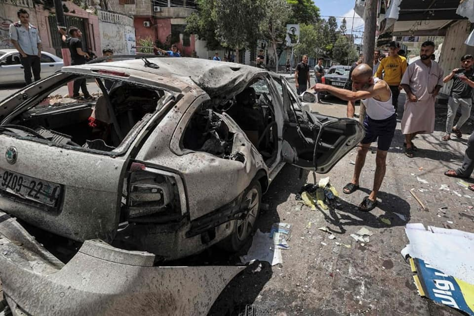 Reports of the incident mention a vehicle being struck on Al Maghribi street (شارع المغربي), in the city of Gaza (غَزَّة).